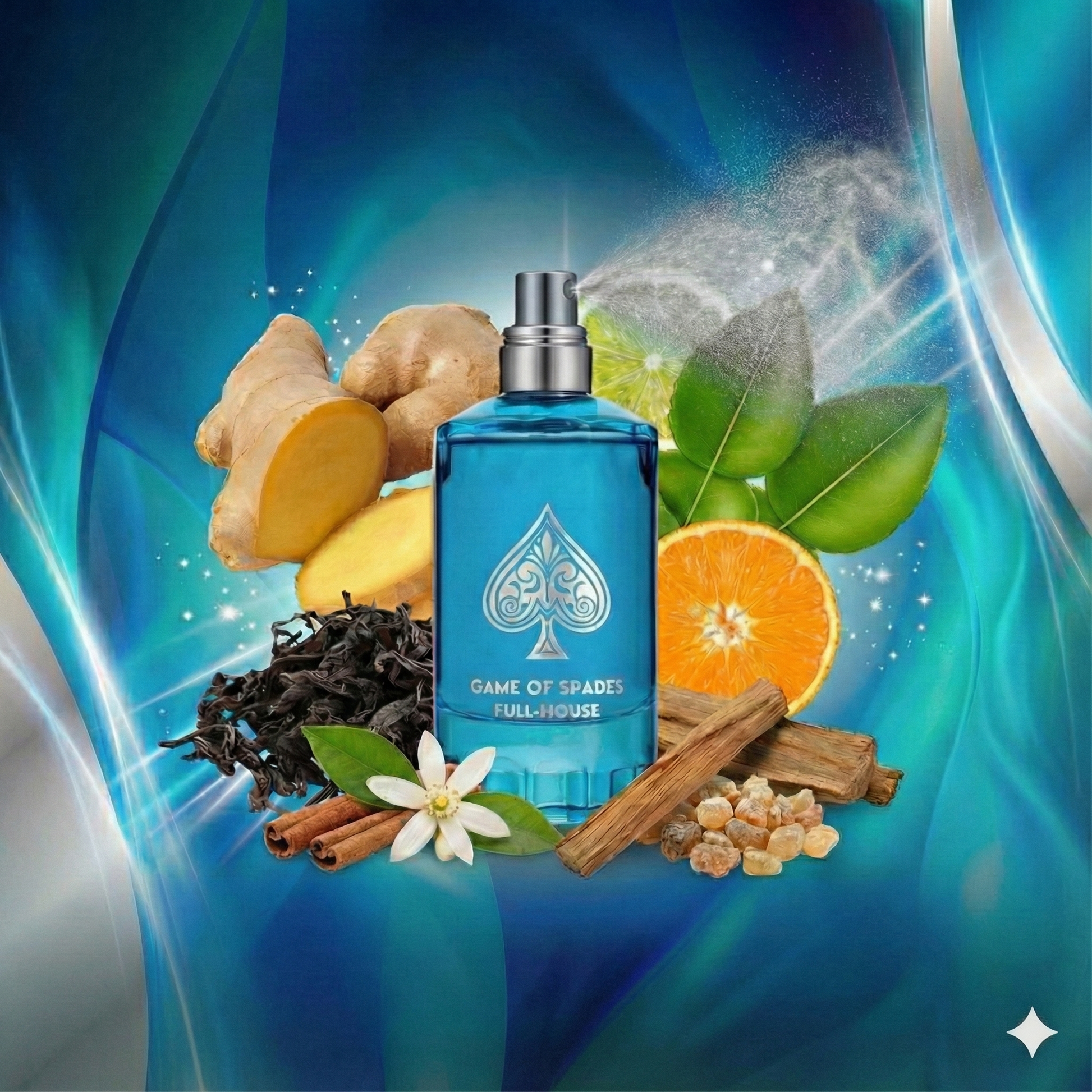 Game of Spades Full House de Jo Milano es una fragancia vibrante que captura la esencia del lujo cítrico y la sofisticación del té negro en formato líquido. Esta creación moderna es un Eau de Parfum cítrico-aromático que se distingue por su nota magistral de té negro combinada con jengibre picante, evocando una sensación de limpieza energizante y elegancia de "hotel de cinco estrellas". La composición se abre con una explosión de cítricos brillantes (cidra, bergamota y naranja) que crean una entrada solar y radiante, florece en un corazón especiado y floral donde el jengibre nigeriano y el neroli aportan un frescor picante pero jabonoso, y se asienta en una base lujosa de té negro chino, ambroxan y maderas suaves. Es limpio pero opulento, fresco pero con una duración sorprendente, masculino y profundamente atractivo. Una fragancia para quien busca oler a limpio de una manera costosa, proyectando un aura de éxito relajado y sofisticación veraniega.