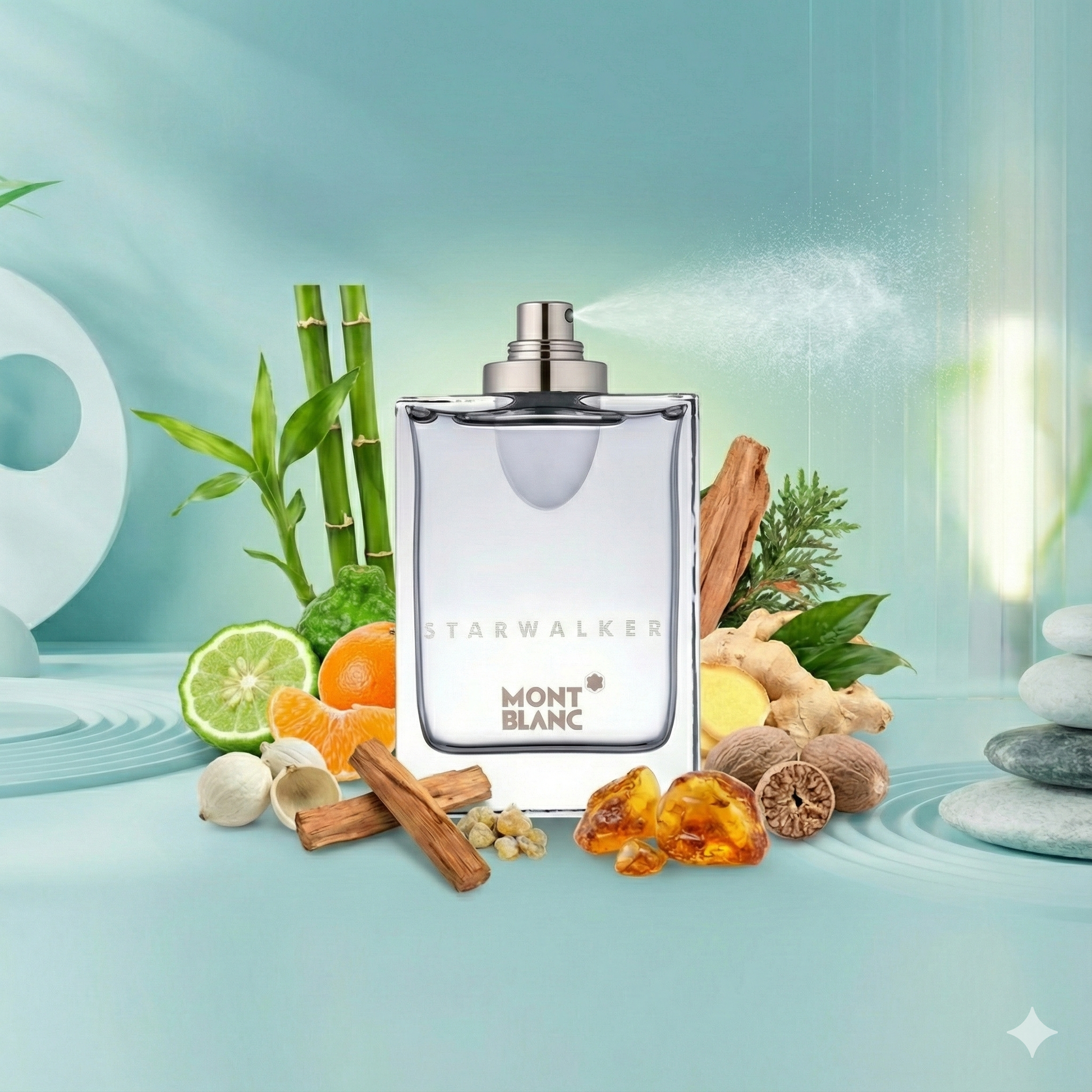 Starwalker abre con una frescura única y distintiva: bambú domina inmediatamente con su carácter verde, crujiente, ligeramente acuoso y profundamente relajante que no se encuentra en fragancias convencionales. Bergamota añade brillo cítrico elegante mientras mandarina aporta dulzura frutal sutil. Esta apertura evoca la sensación de recién salir de la ducha en un spa zen rodeado de bambú. El corazón revela cremosidad envolvente: almizcle blanco crea una base limpia y suave casi talcada, sándalo aporta cremosidad amaderada sedosa, y cedro añade estructura masculina con su carácter de lápiz recién afilado. Esta combinación es lo que hace de Starwalker algo especial: no es solo frescura efímera, tiene cuerpo y profundidad. El secado final abraza con calidez especiada: jengibre añade un kick picante sutil, resina de abeto aporta toques balsámicos verdes, nuez moscada contribuye especias aromáticas, y ámbar cierra con calidez discreta. El resultado es una fragancia que huele a calma sofisticada: limpia, fresca, relajante, pero con suficiente carácter para ser memorable. Es el perfume de quien valora presencia sutil sobre dominación ruidosa.